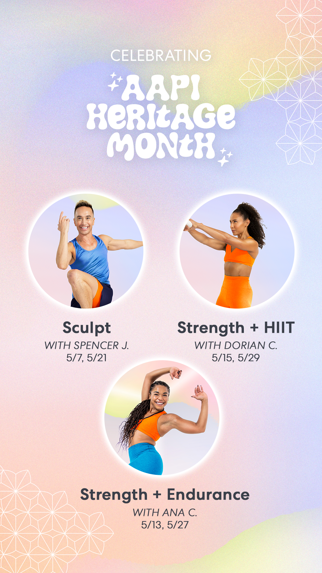 This is a fitness program themed around the AAPI heritage month. I created the visual identity and applied to all marketing materials for social promotion.