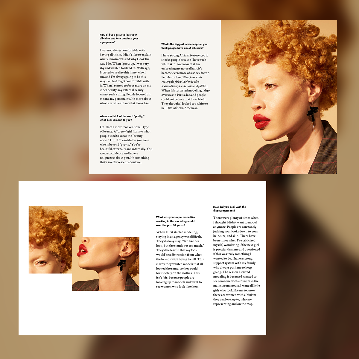 This is an exclusive editorial story on Byrdie.com featuring three successful fashion models: Khoudia Diop, Anita Marshell and Diandra Forrest. I designed the layout for the full story.